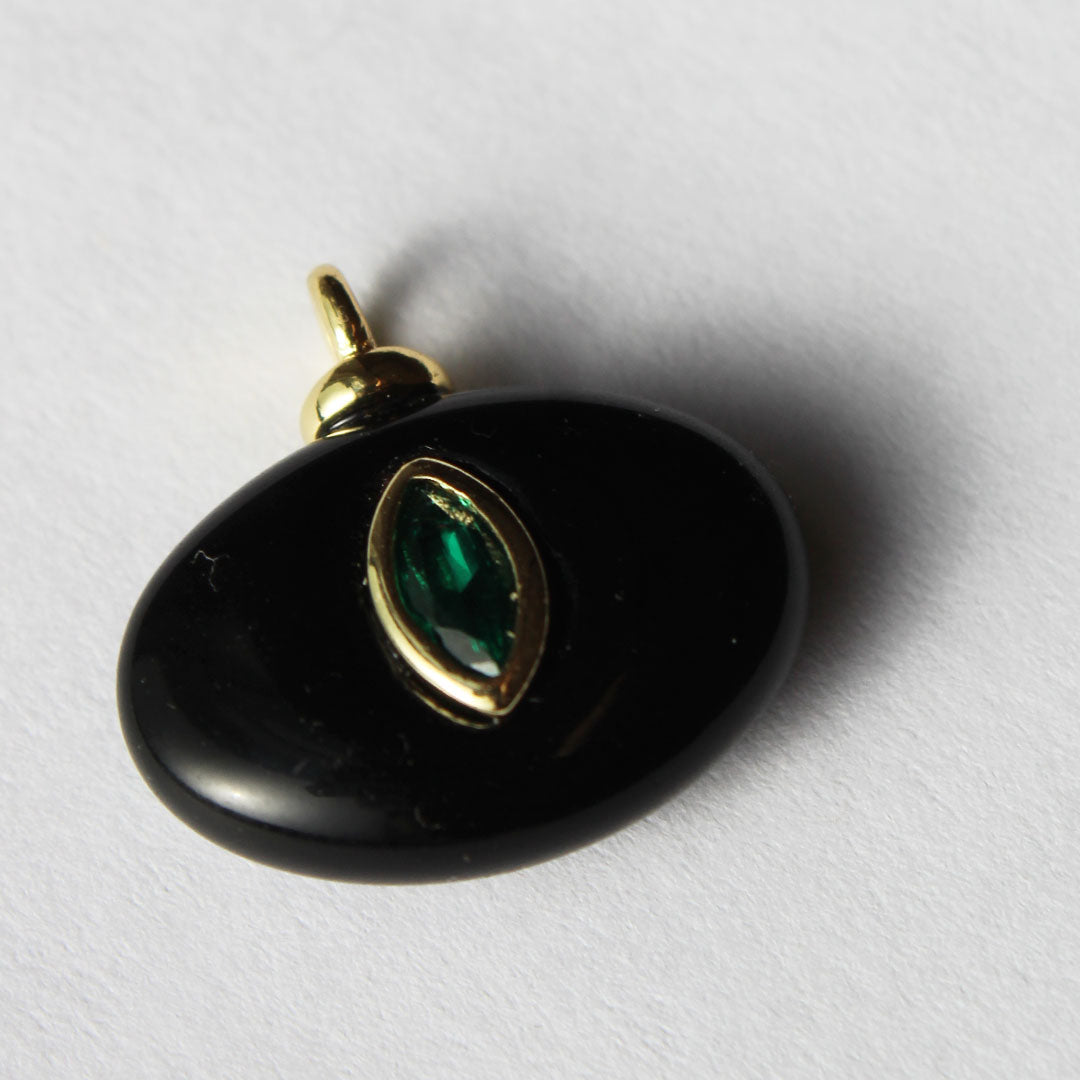 Dark and mysterious just like you. Oval east-west black onyx with a marquis green cz.
