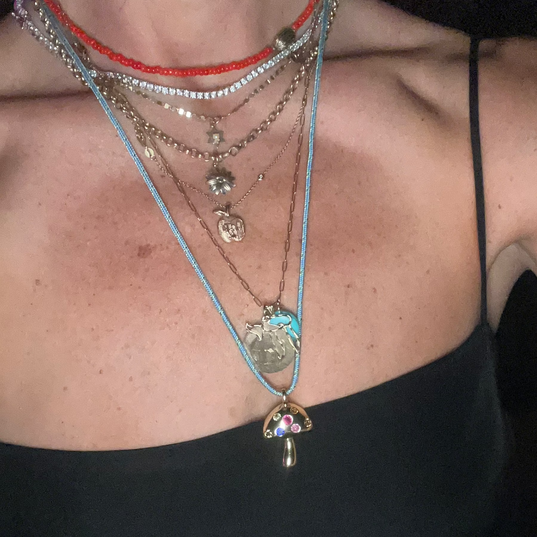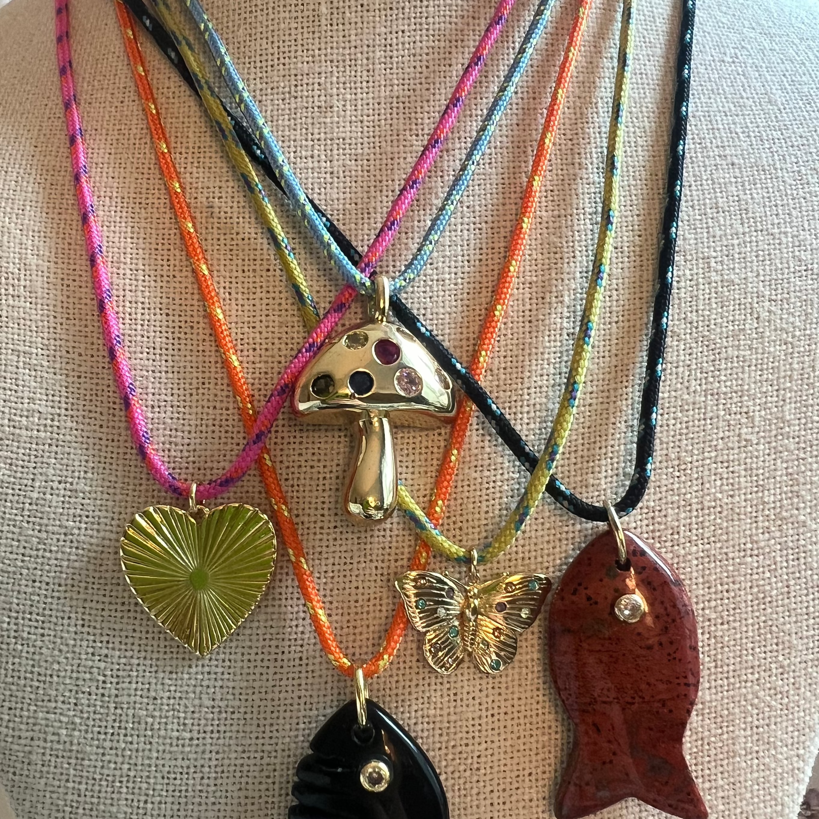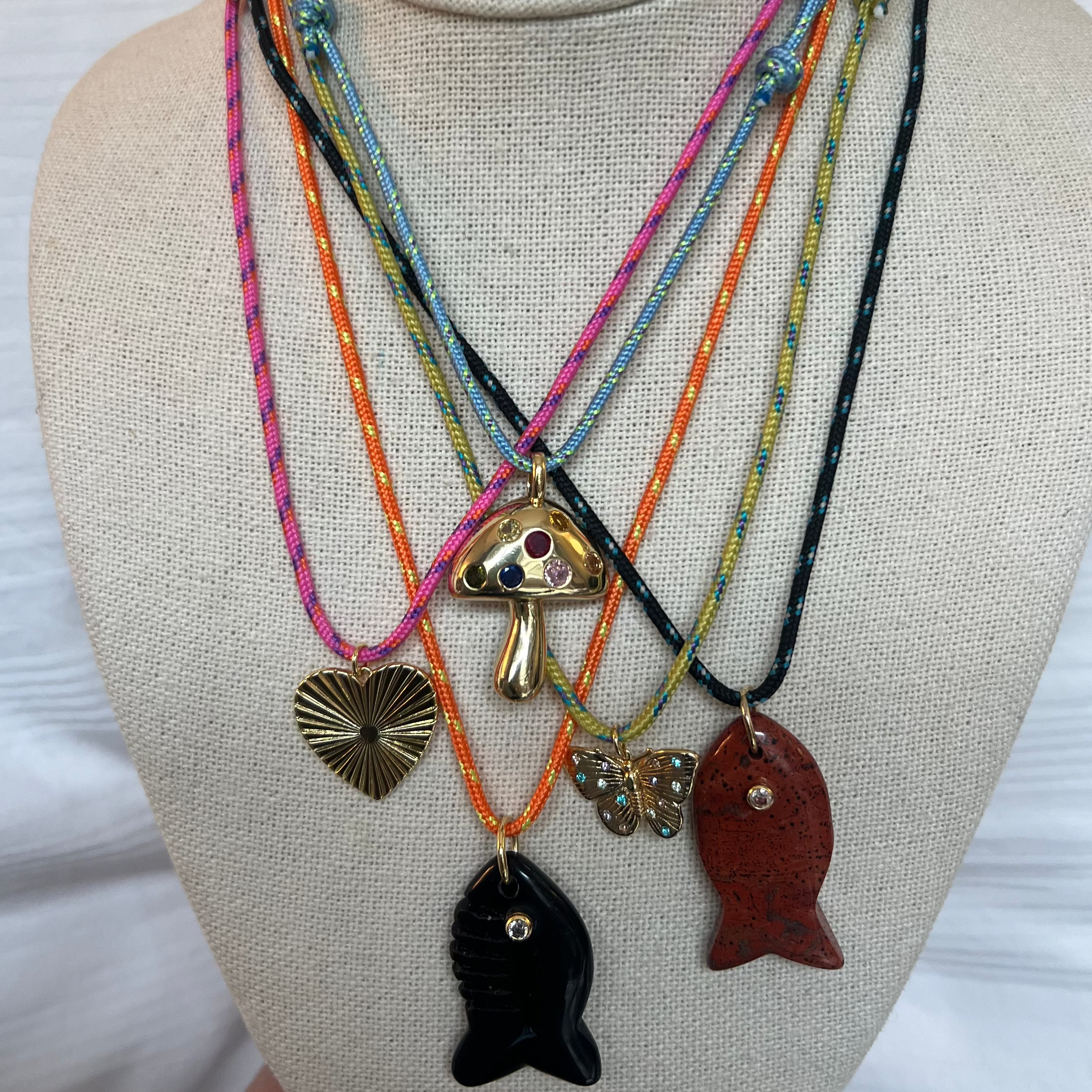 2mm paracord necklace available in 5 colors. These are such a fun way to inject some color and fun into your outfit! Adjustable from choker length - 24" at the longest.