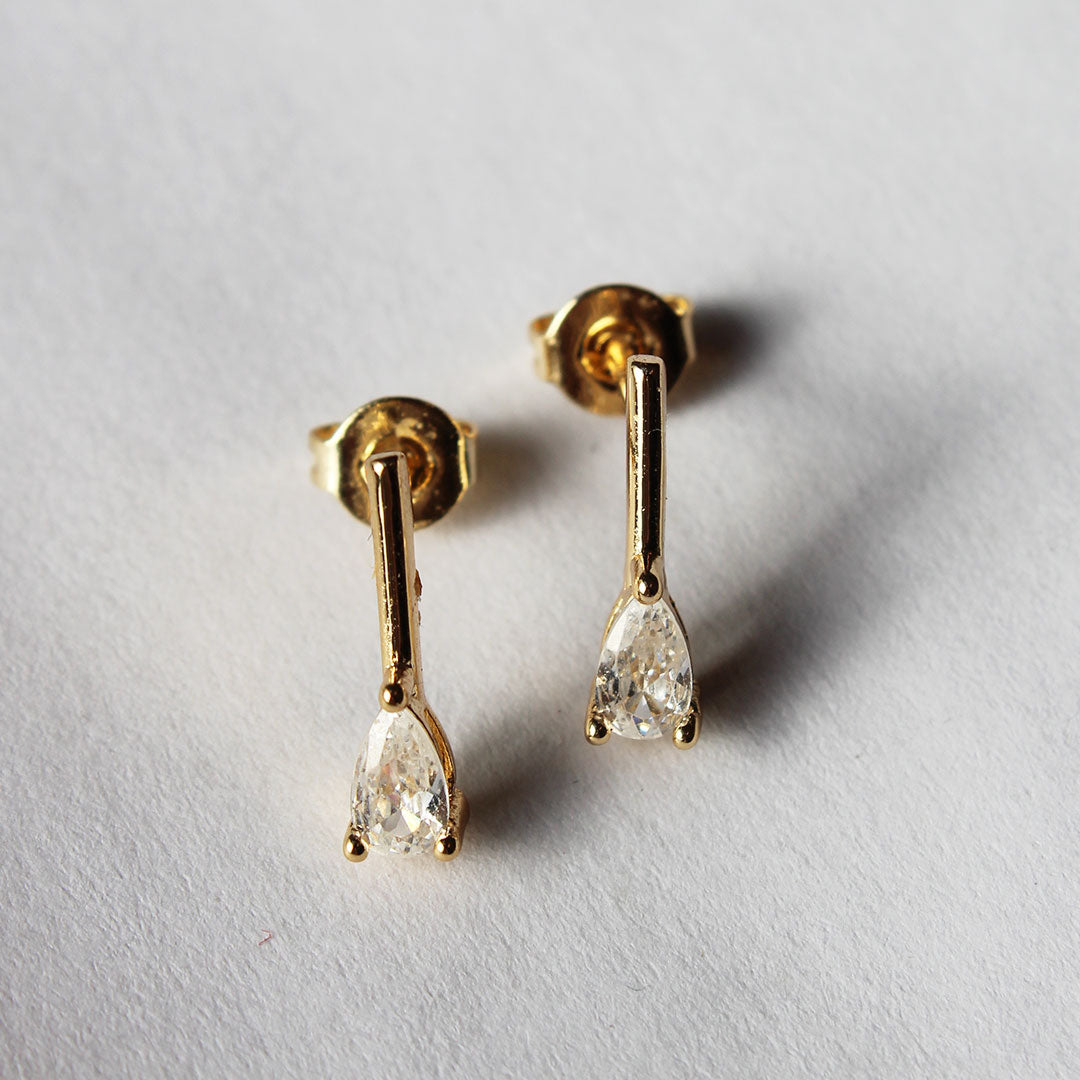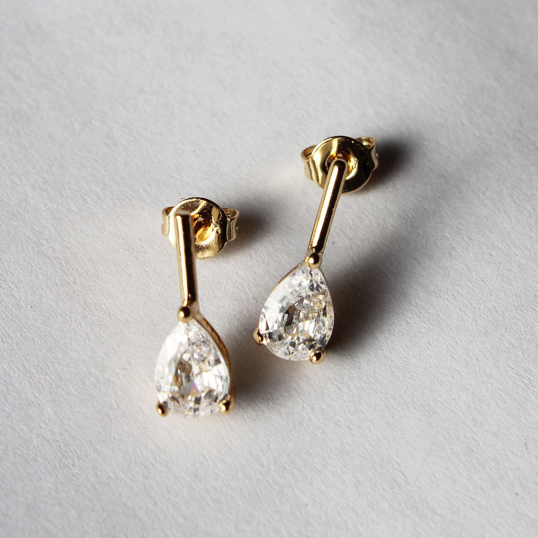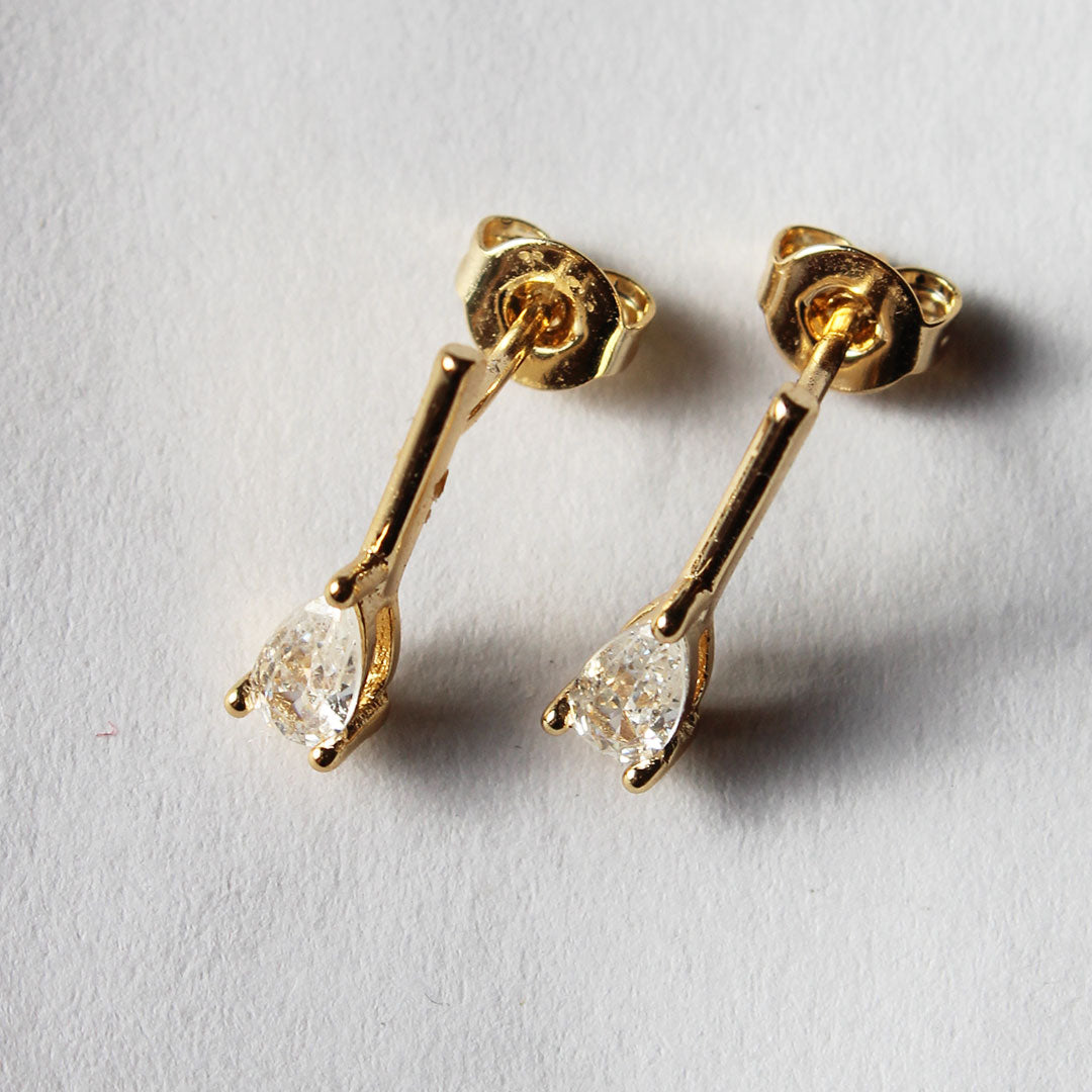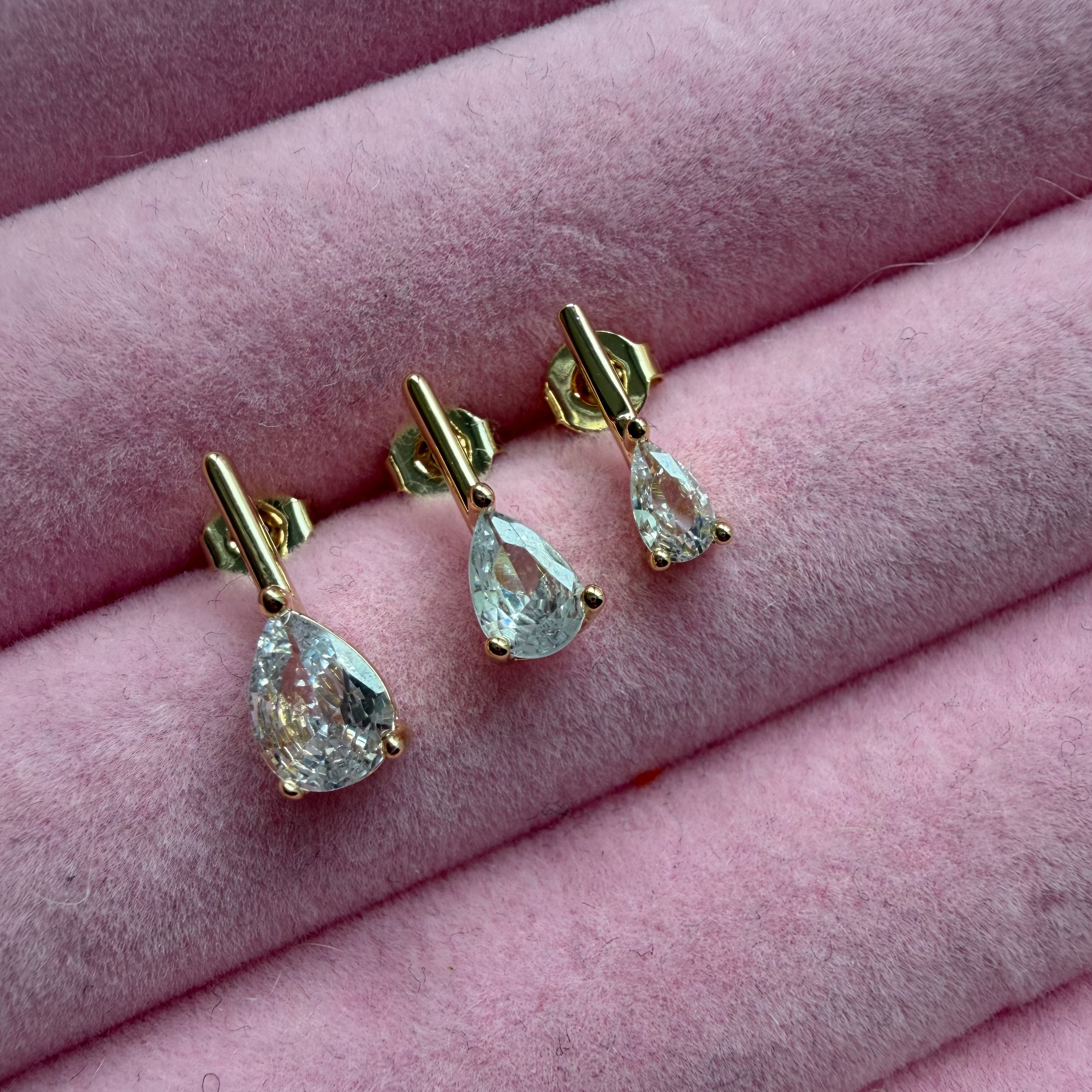Our new bestie.  Gold filled and available in 4 sizes of pear shaped CZ.